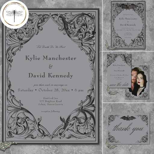 Victorian Bat Until Death Black & Gray WeddingDesigned by Kathe Santillo
