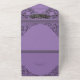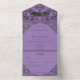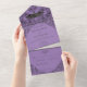 Elevate your gothic wedding with a Victorian-inspired all in one wedding invitation without dinner choices that exudes timeless elegance and mystery. Designed to resemble an antique book binding, this stunning design features intricate a black and purple lacey filigree, evoking the charm of a bygone era. A bat, its wings spread, sits at the pinnacle. The wording, "Til Death Do Us Part" can be edited and changed, or deleted entirely, if you prefer. Let your love story unfold with an invitation as unforgettable as your day. Created by Simply Farmhouse Press.