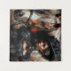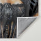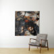 Tapestry features a painting of a black woman in Victorian-style fashion, next to a brown and white horse. Afro-Victorian or afro-goth aesthetic with dark-skinned African American lady or other African diaspora female in elegant vintage clothing. Neutral colour palette with browns, creams, black.