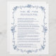 Elegant Victorian French blue floral 'Pass the Poem' bridal shower game with custom text on the back. For more advanced customisation of this design, please click the DESIGN TOOL BUTTON above!