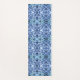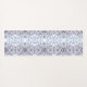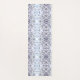 Victorian pattern yoga mat in blue on front, distressed on back for a vintage look. Flip it to suit your mood