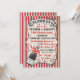 Vintage Victorian Champagne Celebration Party Invitation with antique clip art french champagne bottle popping it's cork with pretty red bow ribbon. Old victorian banner and scroll work, streamers and confetti on a grungy red and white striped background. Please contact me with any custom work, colour changes or questions!