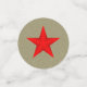 This table confetti has large circles with a little Blonde Victorian angel in a red cape holding a little Christmas tree on a tan background with white flecks. The medium circles are red with Merry Christmas in Gold. The small circles have a bright red star on tan background.