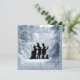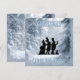 Personalise this Victorian Christmas Caroling Party winter theme invitation design- The front shows a black silhouette of three singing Christmas carolers dressed in Victorian style clothing and a dog listening to the Christmas carols. With a beautiful, winter photo of snow-covered pine trees background on the front and back. Reads 'Christmas Caroling Party' on front with matching, blue snow themed letters with shadow effect. Matching back is ready to be customised with your Christmas party details. There are different styles and holiday party invitation sizes, too. Pretty, festive Christmas caroling party get together style for churches, organisations, family, or friends.