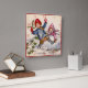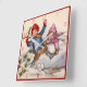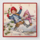 Holiday clock with a charming image of two children playing in the snow in early 1900s clothing.