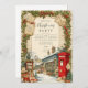 Step into a charming holiday scene with this Victorian Christmas village design, complete with snow-covered shops, festive holly garlands, and a bright red postbox. Perfect for hosting a warm and nostalgic Christmas celebration, this invitation captures the spirit of an old-fashioned holiday gathering with cosy, festive charm.