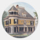 Vintage illustration of a beautiful multi-storied Victorian house with large porch and turret.