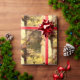 A lovely little girl stands beside a tree with a robin's nest in a vintage painting. Wrapping paper for nostalgic gifts and paper crafts.