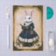 A charming anthropomorphic white rabbit stands gracefully in a richly detailed, vintage inspired portrait. Dressed in a Victorian-style dress with delicate lace trim, puffed sleeves, and a ruffled collar, the rabbit appears absorbed in reading a beautifully decorated book. A small, ornate handbag hangs at her side, adding to the elegant, storybook aesthetic. The background features an aged parchment look with botanical flourishes and an intricately illustrated border, giving the whole piece a classic fairytale vibe. Soft shading, refined textures, and the gentle expression on the rabbit’s face create a warm, nostalgic, and whimsical scene, reminiscent of fine art illustration blended with cottagecore fantasy……COLOR COMBINATIONS: Navy blue, cream, ivory, beige, tan, gold, charcoal, pink, green……PERFECT FOR: Decoupage, furniture upcycling, Easter mixed media, collage, art panels, journals, shabby chic, cottagecore, dark academia, fairytale crafts, vintage inspired décor, storybook projects, and whimsical animal themed artwork.........…... 🖤 NOTE 1. This design is available in two options: Left and Right. You can find them in the Collection shown below. If they don’t appear there, try searching for their unique identifiers: ER7L for the Left design and ER7R for the Right version….🖤 NOTE 2. The 18 lb tissue is a great choice if you like a little extra strength—it's easier to handle, resists tearing and allows for gentle repositioning. It’s also more opaque, making it perfect for darker surfaces. The 10 lb tissue is wonderfully lightweight and flexible giving you that smooth, blended finish. It’s ideal for layering on furniture or smaller projects so treat it gently and it will reward you with stunning results!.….🖤 NOTE 3. All items with this particular design share my unique identifying “Letter/s Number/s” label in the title for easy searching. …..🖤