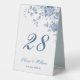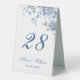 Elegant Blue Vintage Garden Flowers Wedding Table Tent Sign.