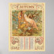 Victorian Era Art Nouveau Autumn Calendar by Mucha Poster