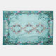A design derived from a victorian style open book with beautiful scroll design and is embellished with pink and purple roses against a teal background with a slight texture look. Very elegant.