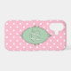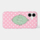 Vibrant colors, a Victorian frame and Rococo style details combine to create this cute, pink, girly phone case. An initial (in white text) sits center inside the green frame, while a bright pink and white polka dots pattern creates the background.