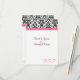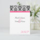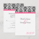Small RSVP card to match our Elegant fuchsia hot pink, black and white wedding invitation, with elegant floral damask accent, and coloured horizontal accent strip. Customise online with your wedding details.