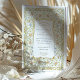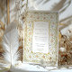 The reverse side offers a delicate floral crest surrounded by ornate golden flourishes and symmetrical scrolls, giving a cohesive and timeless finish to the suite. Ideal for couples planning a romantic garden ceremony or a celebration with vintage flair and botanical elegance.