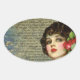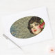Victorian Glamour Girl w/ Red Rose Oval Sticker