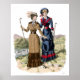 Two beautiful Victorian ladies in long dresses make their way through the countryside with walking sticks. From a 19th Century fashion illustration from the Victorian publicaiton "Le Journal des Demoiselles."