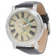Vintage antique look wrist watch with leather strap angel with rosey cheeks and the moon