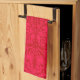Victorian motif in red tea towel