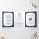 Victorian Navy Blue Catholic QR Code Wedding Tri-Fold Invitation