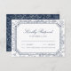 Victorian Navy Blue Floral Line Art Wedding RSVP Card