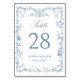 Victorian Ornate Dusty Blue Floral Wedding Table Number