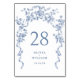 Victorian Ornate Grace Floral Dusty Blue Wedding Table Number
