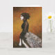 This card is illustrated with a beautiful Young Victorian Lady in a black and white peacock dress.