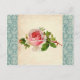 A beautiful Victorian rose illustration from a calling card is set on an aged background with an aqua or turquoise damask border.  A beautiful shabby chic or vintage design for the feminine, yet elegant, girly girl!