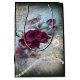Lovely, vintage, red rose florals on newspaper print, featuring a faux pearl brooch and necklace, to create a luxury, extravagant, victorian chic style.