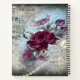 Lovely, vintage, red rose florals on newspaper print, featuring a faux pearl brooch and necklace, birdcage with teal bow to create a luxury, extravagant, shabby chic style for a junk journal.