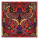 A glowing stained glass pattern in vintage Victorian style. The age-old art of leaded and stained glass is re-created here against a textured background. Light shining through a translucent pane of coloured glass creates a glow of peace and tranquillity.
