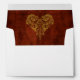 A heart made up of rusty gears is hiding in the lining of this envelope, the perfect adornment for our Victorian Steampunk themed wedding invitation suite. The faux antique gold and velvety maroon background colours add an old-world touch.