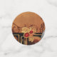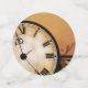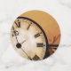 A warm orange-brown backdrop sets the tone for this steampunk wedding design, featuring a vintage clock, gears, and brown line art. At the centre, a Victorian couple—dressed in their finest steampunk attire