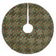 Stylish holiday tree skirt with festive antique inspired design featuring dark green & burgundy striped background with gold snowflake pattern overlay.