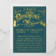 Teal Blue Green Lovely Romantic Victorian Groom Putting the Ring on the Bride's Finger Art Design Teal Blue and Gold Wedding Invitation. Elegance is abundant in this Simple and Modern Minimalist Design with Real Gold Foil, but you choose from Rose Gold, Gold or Silver Foil. Perfect for the Victorian Ballroom Venue Theme Wedding Venue. Can change to any custom colour by clicking customise/edit/personalise further. Once inside the design tool scroll to bottom of layer and click "edit" to enter the background colour tool.