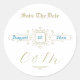 This beautiful Victorian-inspired wedding Sticker adds a touch of elegant vintage style to your special day. This Sticker features a delicate frame of gold, neutral and blue lettering against a white background. Perfect for a romantic wedding celebration, this timeless Sticker will make your guests feel like they have stepped back in time.
