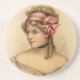 Sandstone coaster with a beautiful Victorian woman with a pale pink bow in her hair.