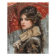 A digital rendering of a highly realistic painting of a woman in a Victorian gown outside in snowy weather.