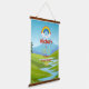 Faith filled saying 'Victory in Jesus-forever King of kings! On a pastel scene of a meandering stream in spring. With a cheerful rainbow in the blue sky. Wonderful housewarming gift or Sunday school decor.