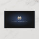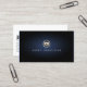 This simple yet very elegant business card features a simple gold icon of video editor video clip enclosed in a gold circle. Your name appears in matching colours and easy to read font below this icon. The background is jet black with a subtle blue glow in the centre of the card, behind the name and icon, giving the card a striking look. Perfect for photography, film, video, artistic skills, filming skills, video skills, imaging, photo editing themes.