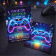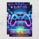 Video game-inspired birthday invitation, level up, birthday invitation, call a game center, neon invitation, glow-in-the-dark video game player