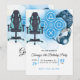 Blue birthday invitation template with a video game design, gaming party invitation, printable gamer chair invitation, gaming printables