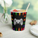 Video Game Controller Neon Gaming Birthday Party Paper Cups. Gaming controller on a vivid colourful neon lights on a black background.