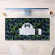 Video Game Neon Blue & Green Pattern Monogram Desk Mat