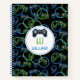 Video Game Neon Blue & Green Pattern Monogram Notebook