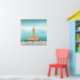 An illustration of Vieste lighthouse in Italy. This lighthouse is drawn standing on its Rocky Island. The theme of the lighthouse is lighting up the dawn or dusk sky. It is also known as Isola Santa Eufemia. It is located between the rocks of Santa Croce and San Francesco, just opposite the town of Vieste, Apulia,