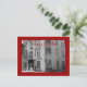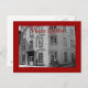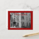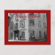 black and white photograph and red border of a street scene in the Vieux Quebec, Canada