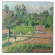 View from the Artist's Window, Eragny . Camille Pissarro. Cute spring landscape in warm colours. A ploughed field with a man standing next to it. The road goes into the distance. There is a small house on the field. There are light clouds in the blue sky. Reproduction of famous works of art images in the public domain.