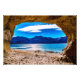 This is the view from inside a small cave on the East shore of Lake Crowley. The Sierra Nevada mountains, not far from Mammoth Lakes, CA, are in the background. Blue water, blue sky, and a nice white cloud. Please feel free to use the design tool to fit the image to your preferred size.